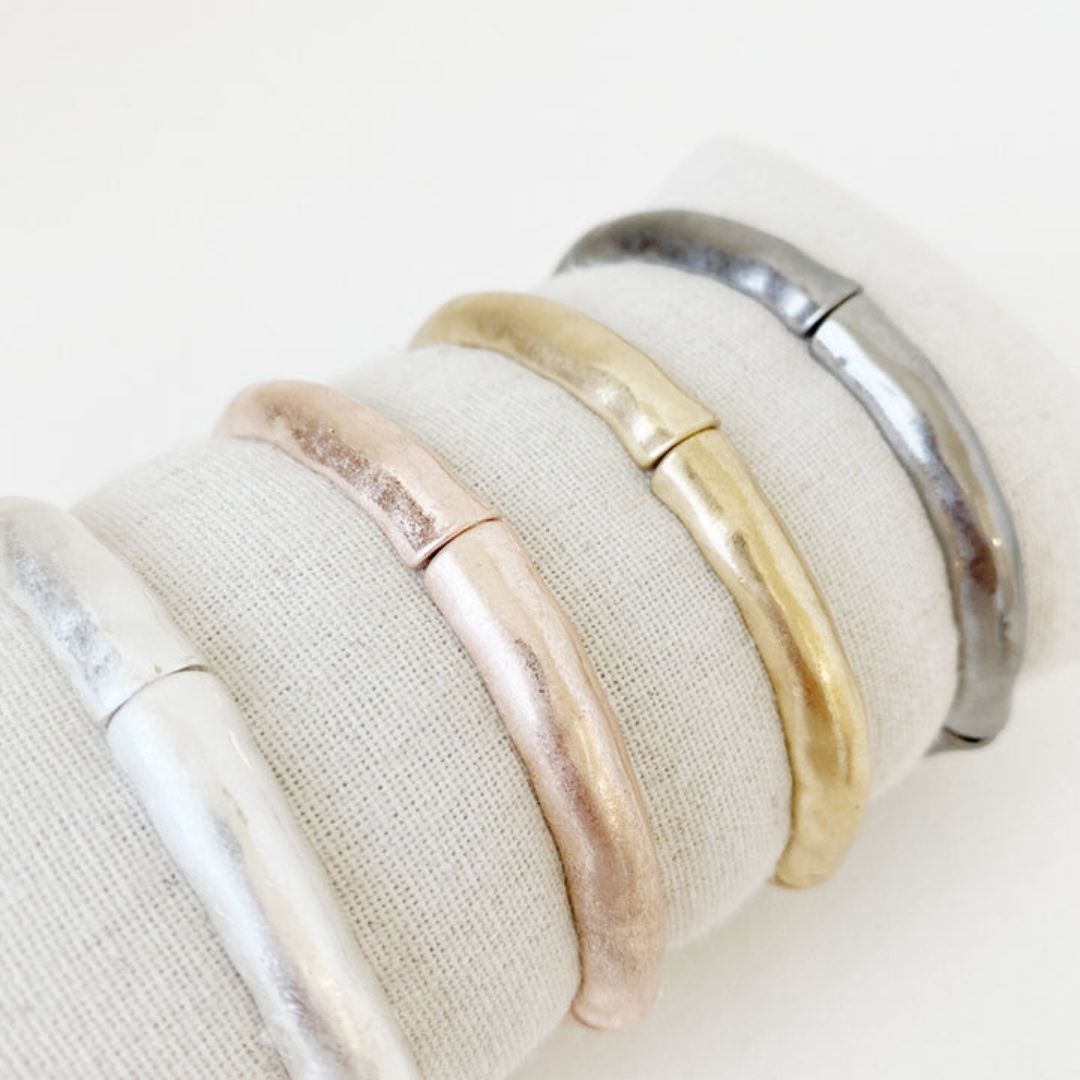 WORN FINISH HAMMERED METAL STRETCH BRACELET - ROSE GOLD - O/S